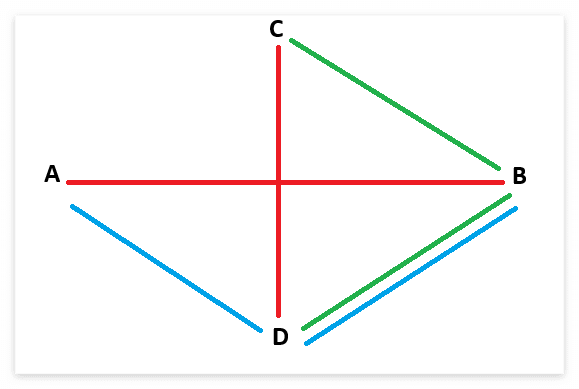 아래 그림과 같이 두 선분이 교차된다면 ABC는 Counterclockwise, ABD는 Clockwise로 서로 다르고, CDA는 Clockwise, CDB는 Counterclockwise로 서로 다르게 나온다.